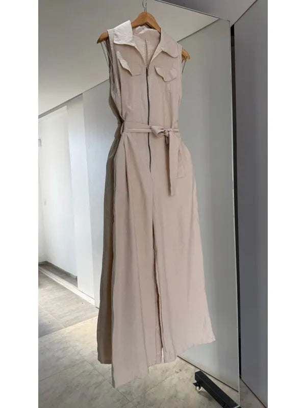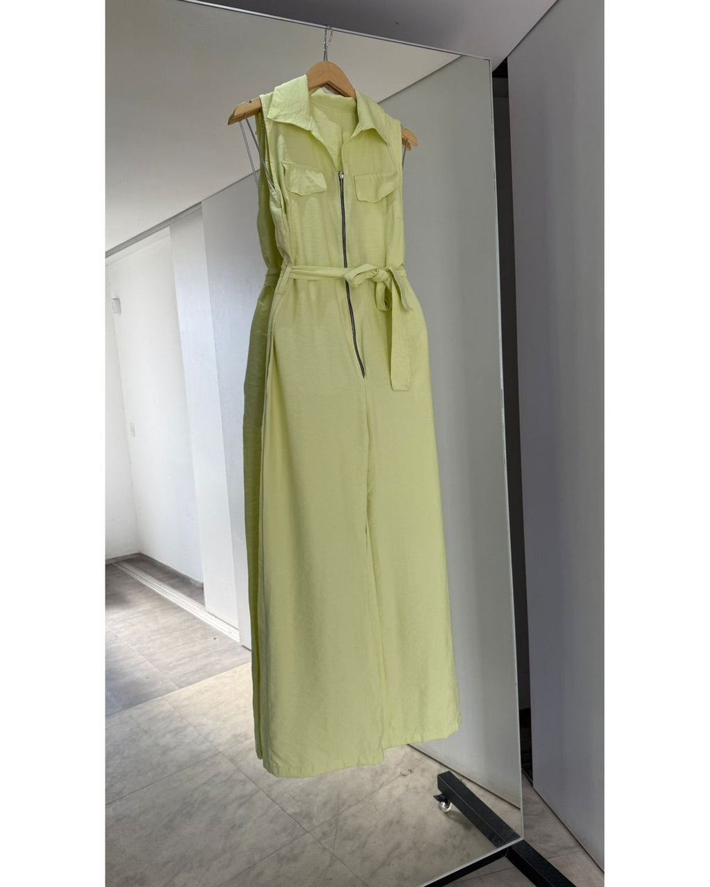 • Modelagem sem mangas, com gola clássica e zíper frontal.