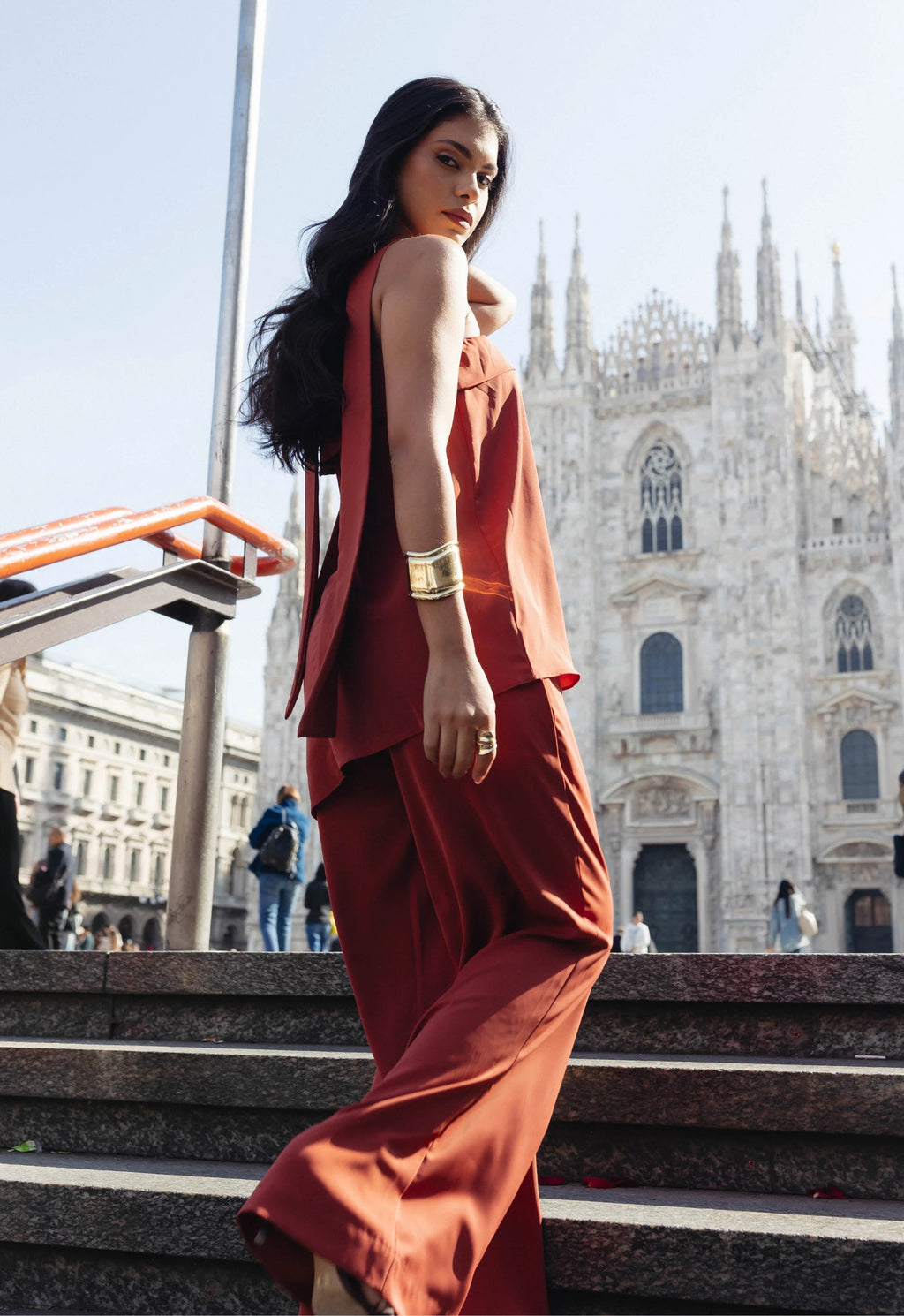 O Conjunto Ana é a definição de sofisticação leve. Com blusa de caimento fluido e calça pantalona elegante, ele traz movimento e conforto em um visual moderno e atemporal.
